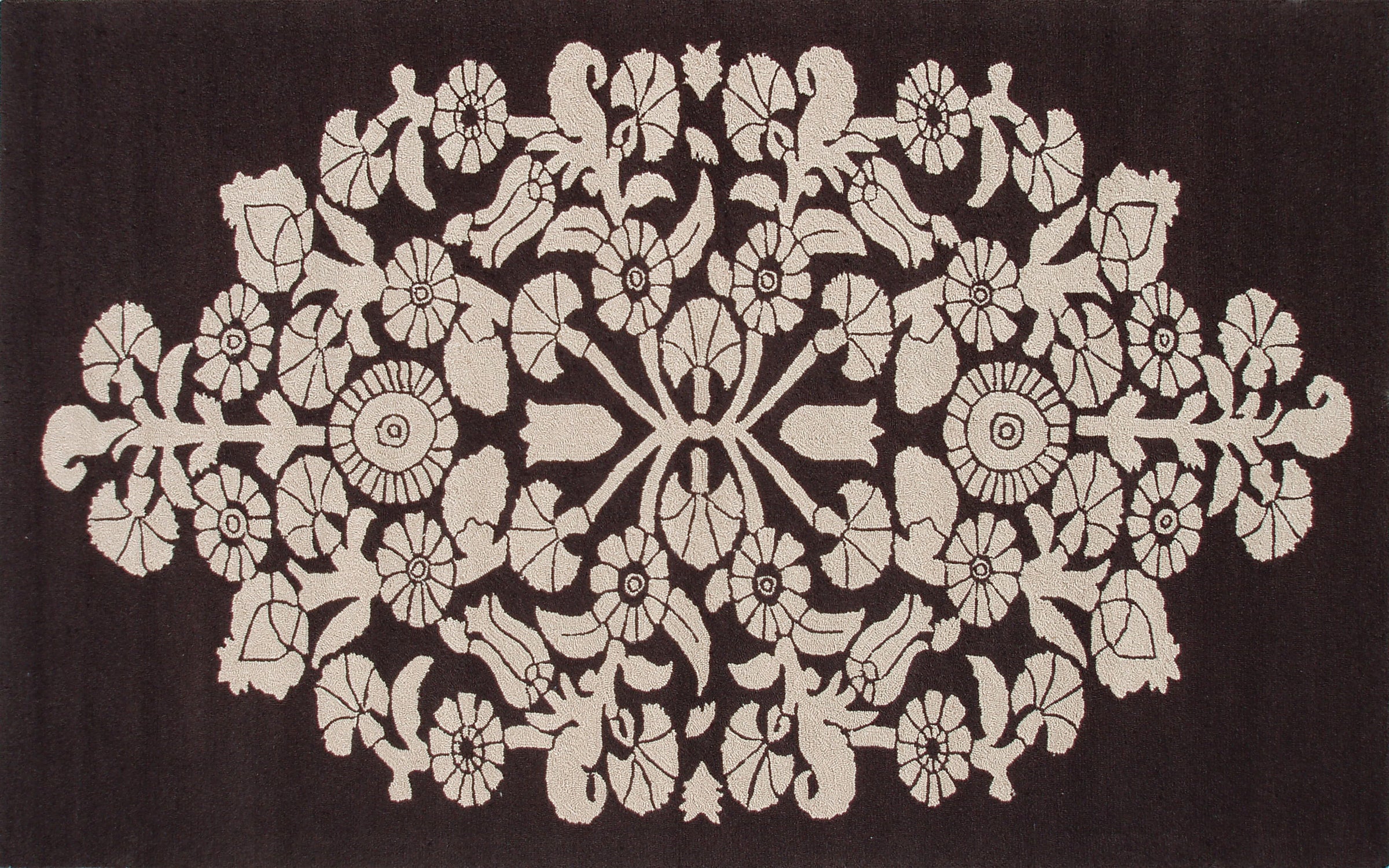 Traditional Floral Area Rug with Contemporary Twist in Warm Brown and White (5×7 – 8×10)