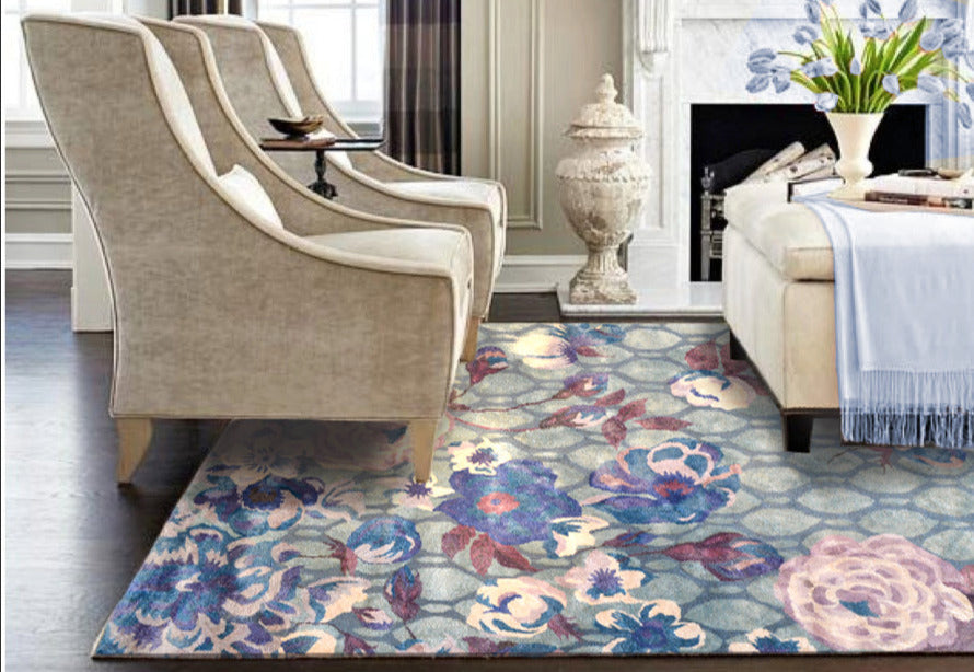 Large Traditional Floral – on – Geometric Low – Pile Synthetic Area Rug for Living Room or Bedroom