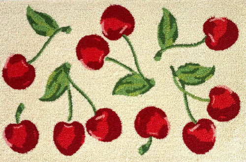 Medium-Sized Traditional/Vintage Floral Area Rug with Red Cherries and Green Leaves