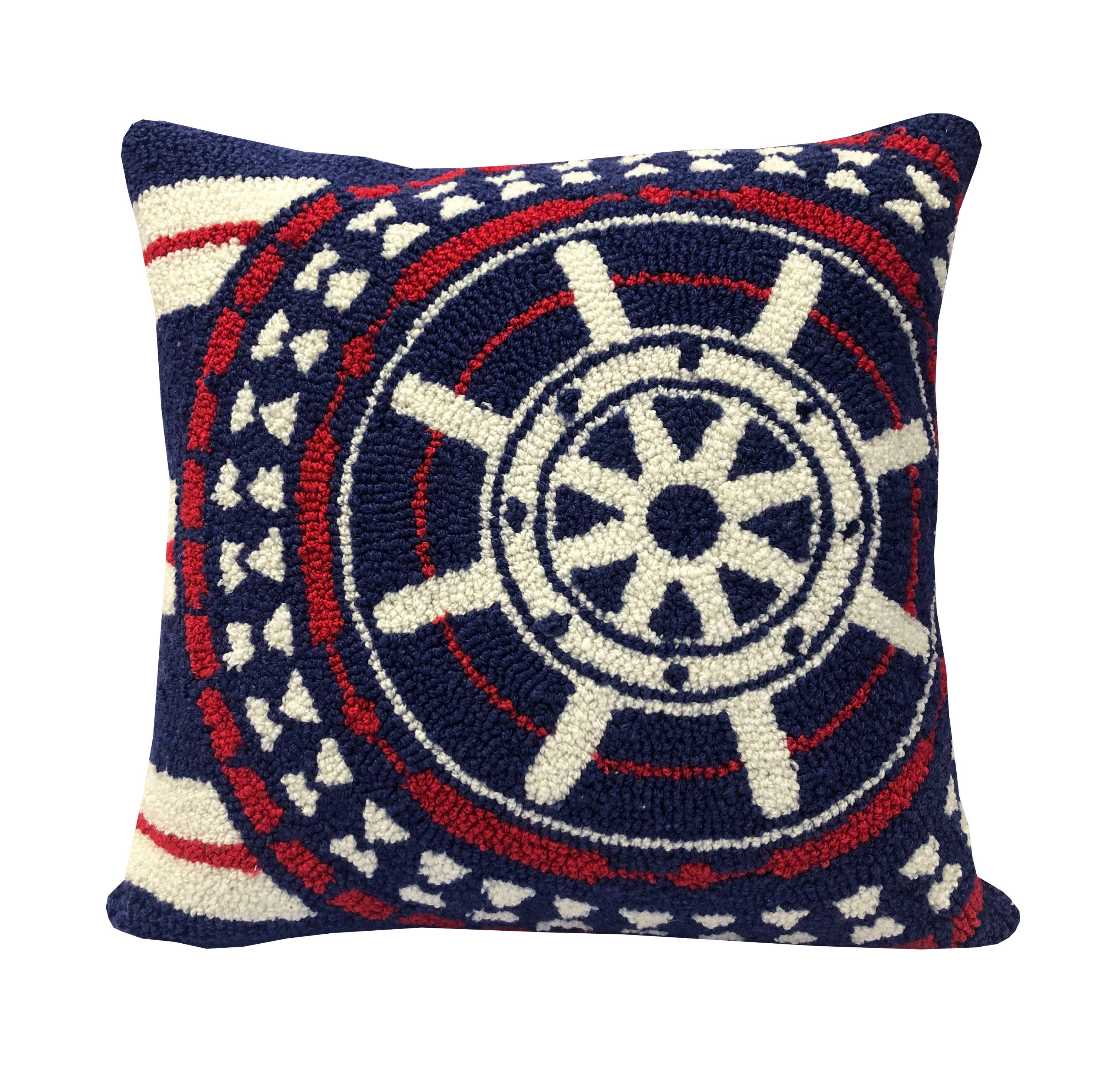 Coastal Geometric Area Rug with Nautical Ship’s Wheel Medallion