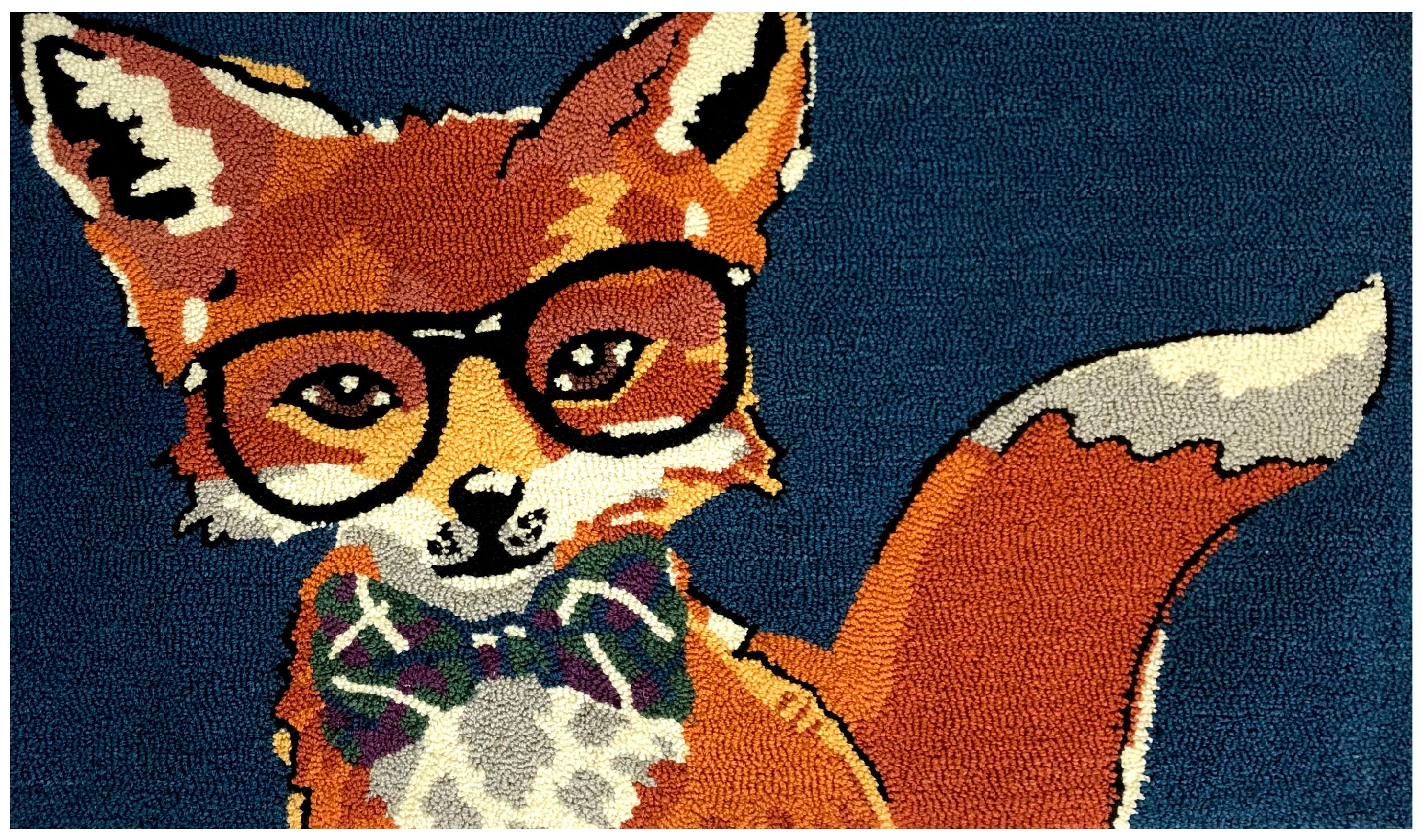Modern Whimsical Area Rug with Anthropomorphic Fox Design in Vibrant Colors