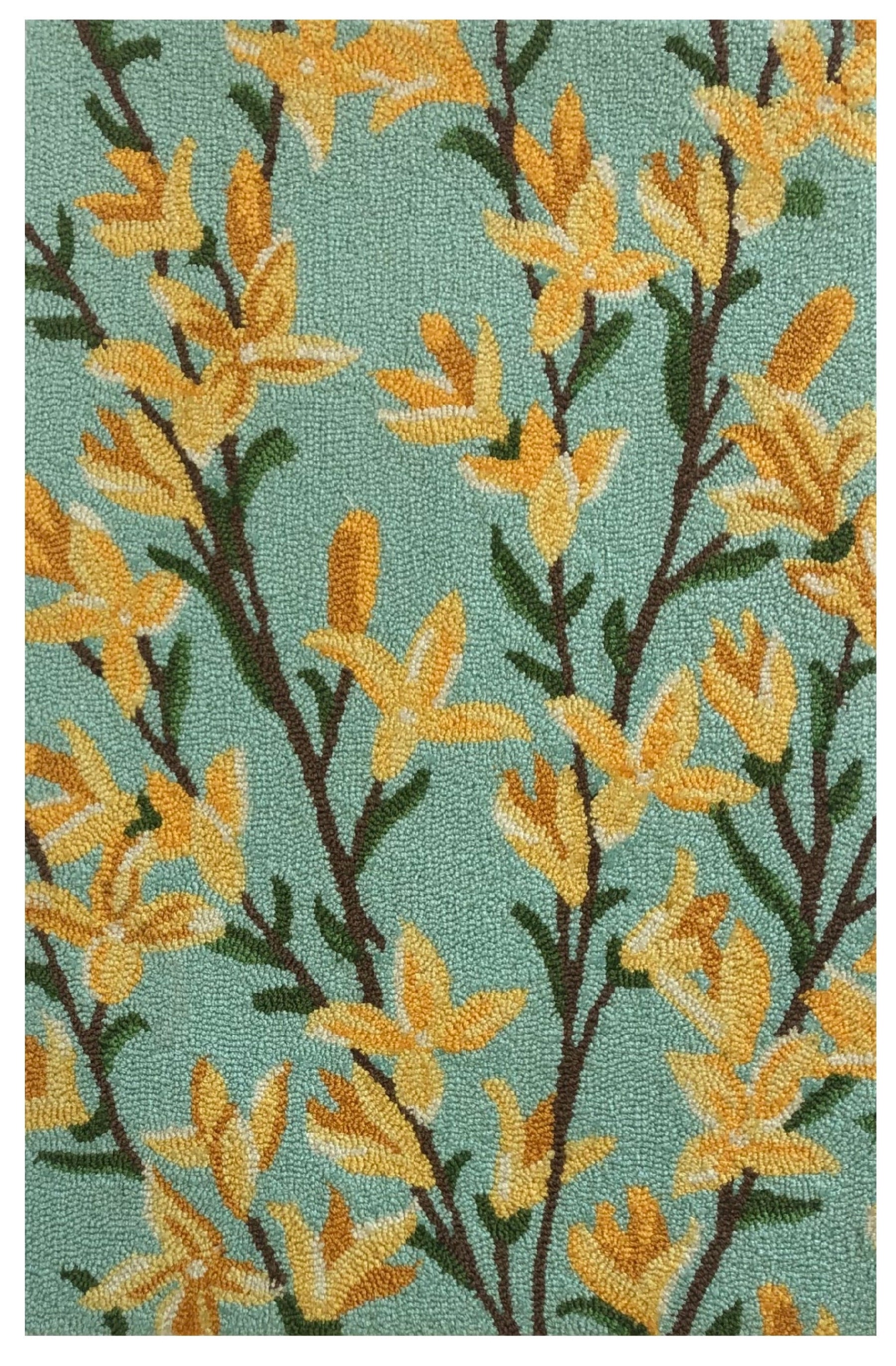 Traditional Floral Area Rug in Light Turquoise and Golden – Yellow, Medium to Large Size