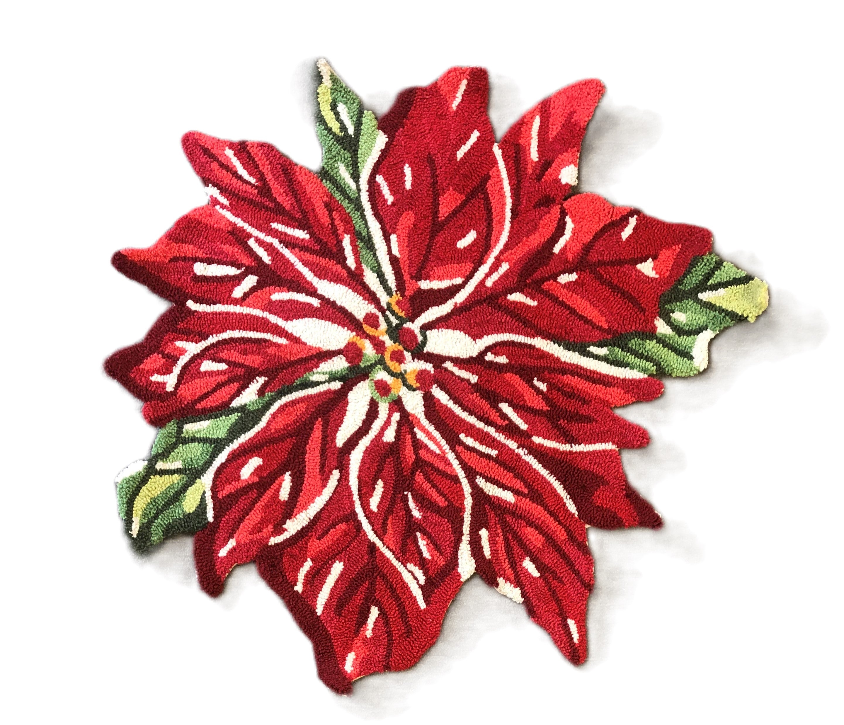 Festive Traditional Floral Area Rug with Red Poinsettia Design