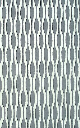 This rectangular area rug features a modern geometric design with an undulating, linear wave pattern. Crafted from polypropylene, it has a smooth, matte finish with a slight sheen. The rug showcases a two – tone color scheme of light to medium gray and white, creating a clean and contemporary aesthetic.