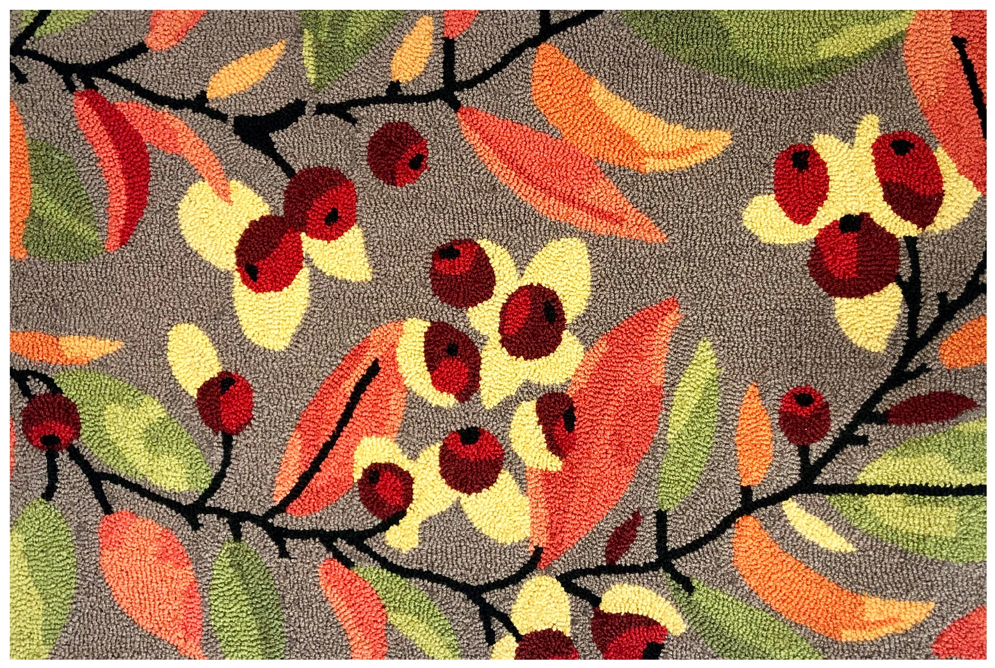 Enhance your indoor spaces with this stunning area rug. It features a modern contemporary design with bohemian influences, showcasing an abstract floral pattern in a multicolor scheme. The neutral gray background is complemented by vibrant accents of red, yellow, orange, and green, creating a visually appealing and balanced look.