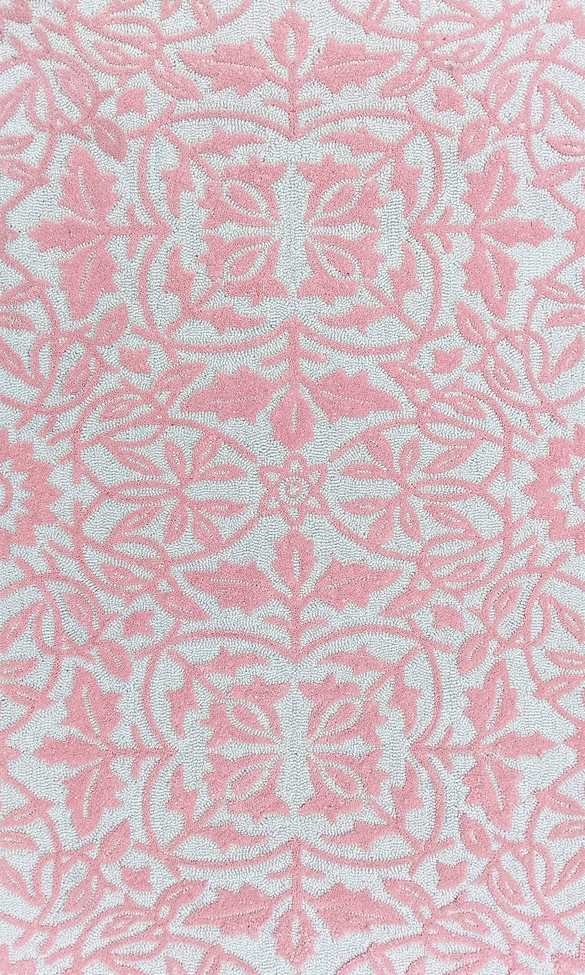 - Design: A two – tone color scheme with a soft pastel pink floral pattern on a light neutral background. The pattern includes symmetrical repeating motifs of leaf – and – vine, rosette – like medallions, and intertwined lines.