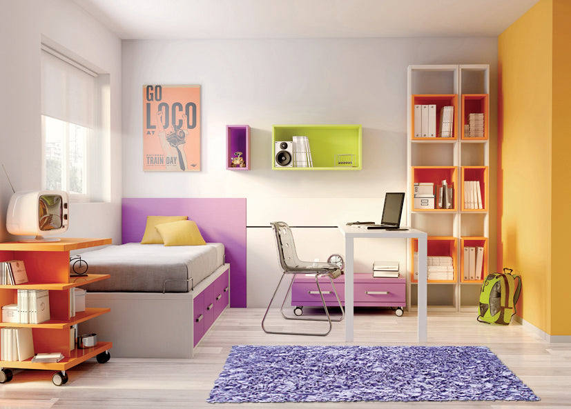 Ideal for a kids’ bedroom, playroom, or compact living area. In a kids’ bedroom, it adds warmth and comfort to hard surfaces. In a playroom, its bold color creates a fun atmosphere. In a compact living area, it can anchor the seating space.