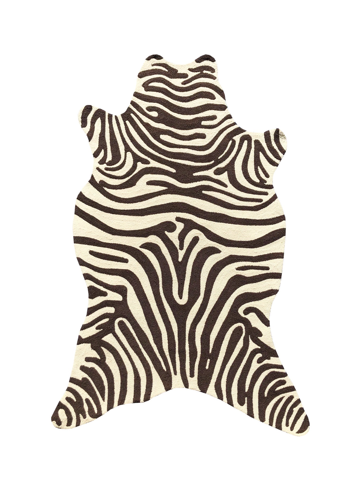 This large area rug features a captivating zebra-inspired geometric pattern in a two-tone palette of dark brown and off-white/cream. Crafted from durable polypropylene with a low pile, it has a smooth, flatweave texture that is visually crisp and clean.