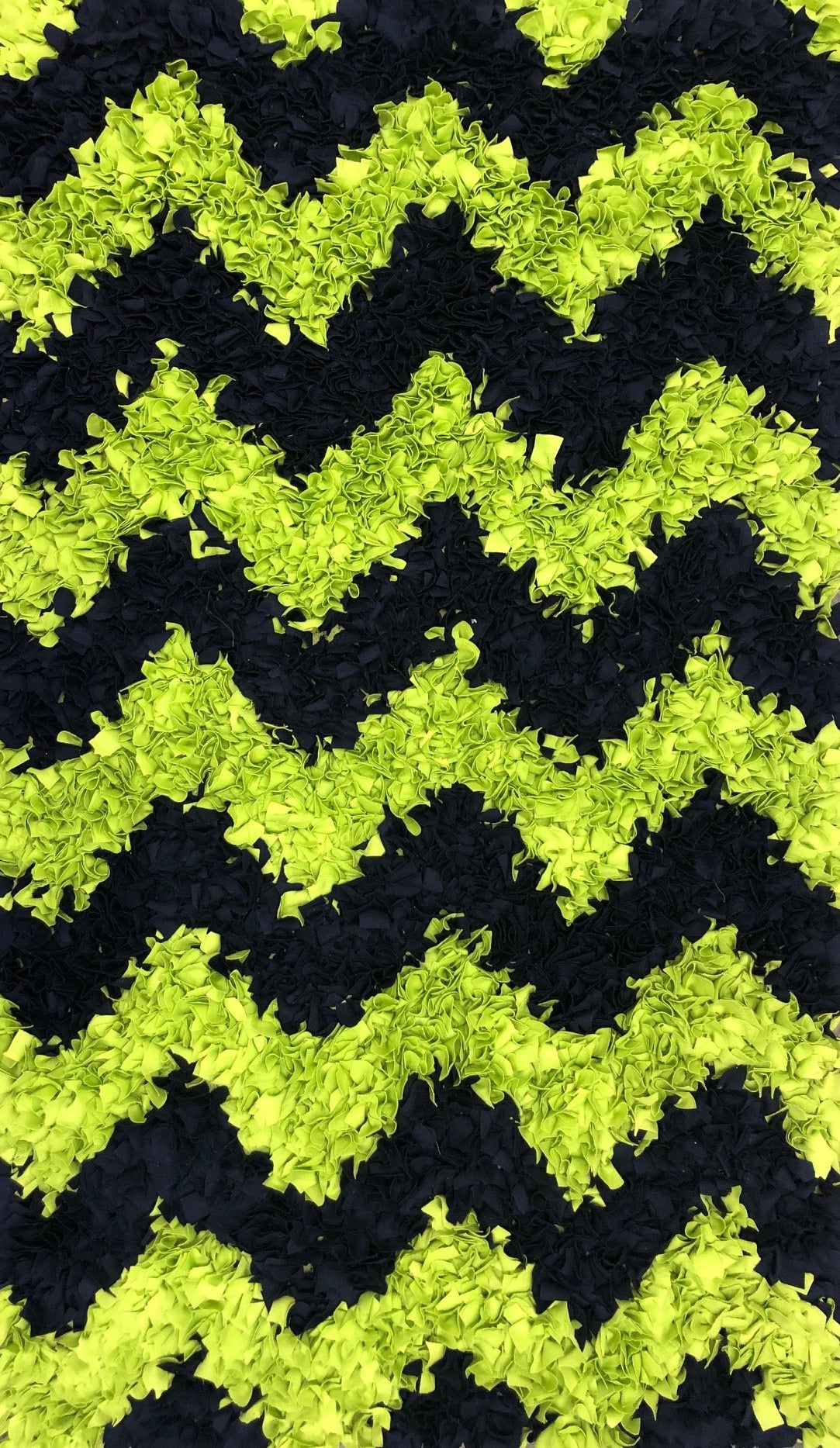 Large Modern Area Rug with Neon Lime Green and Black Chevron Pattern