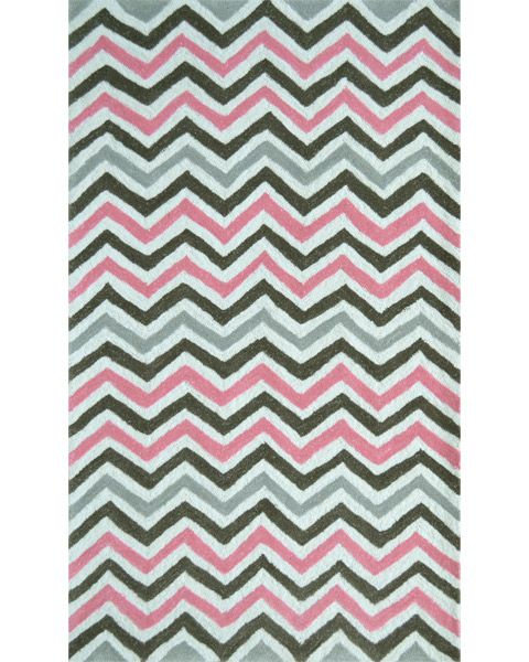 Large Modern Geometric Area Rug in Bright Pink, Light Blue, and Charcoal Gray